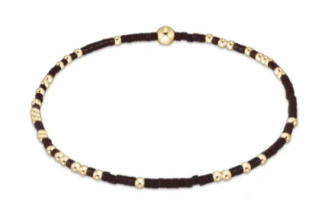 Hand beaded on high performance elastic for a slight stretch to easily roll on and off your wrist