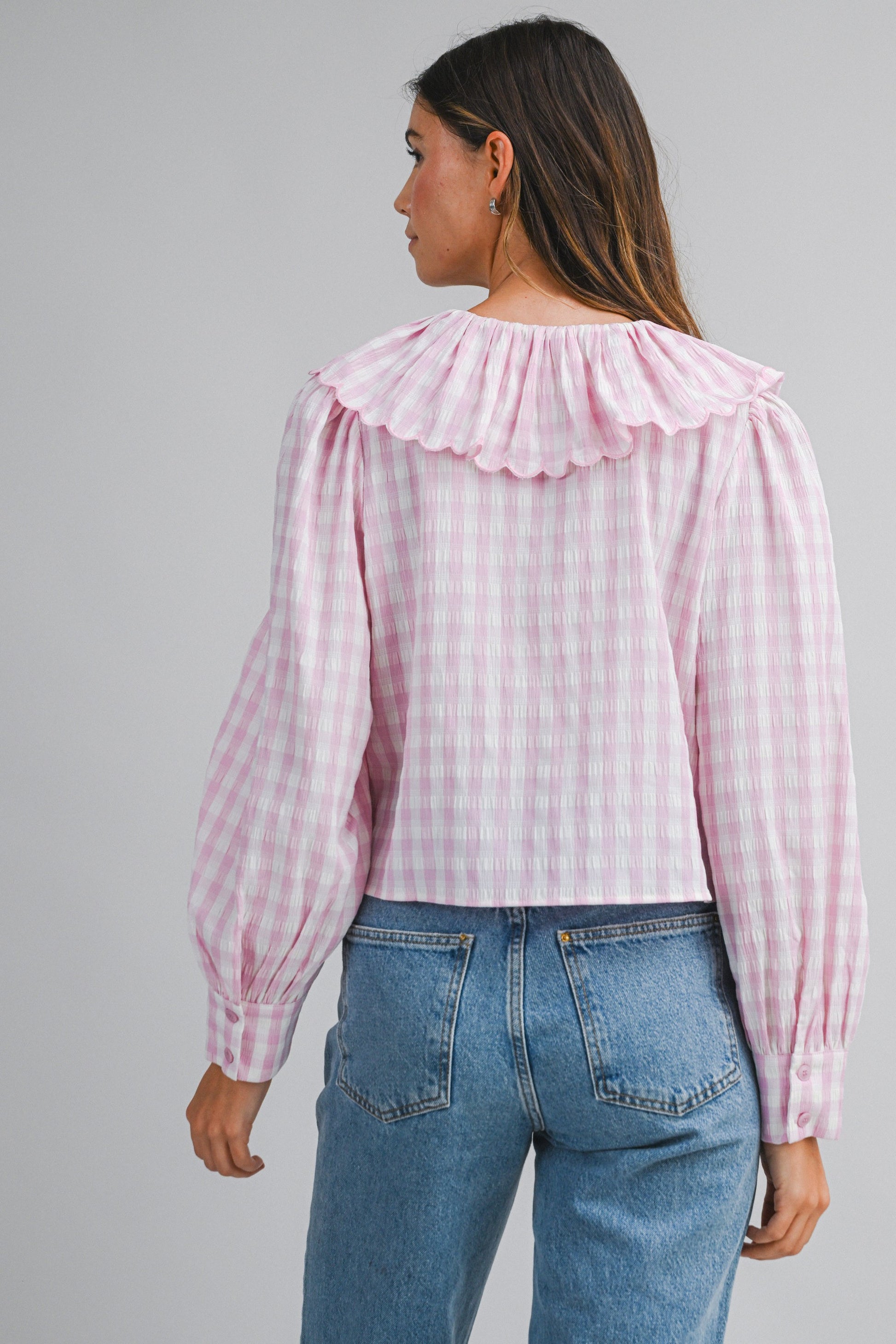 Introducing the Juliet Collared Top—your new go-to for effortless charm! This adorable pink gingham number features a crisp collar that's perfect for dressing up or down. Whether you're heading to brunch, a casual date, or just want to add a pop of preppy fun to your everyday rotation, this top delivers instant personality. The classic gingham pattern is timeless, while the playful pink hue keeps things fresh and flirty. Comfortable, versatile, and undeniably cute—the Juliet is ready for whatever your day brings!